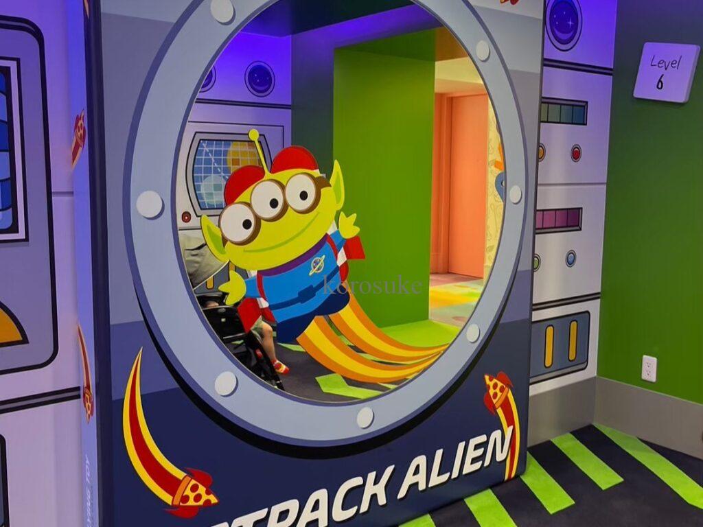 エレベーターが開くと広がるトイ・ストーリーの世界